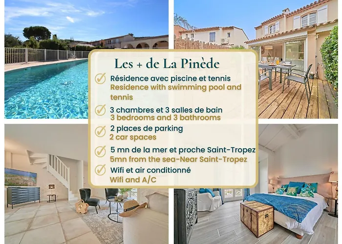 House 3 Bedrooms-3 Bathrooms-Swimming Pool-Tennis, som ligger ungefär 10 minuter med bil från Saint Tropez hamn, erbjuder en terrass med utsikt över trädgården. Villan med 3 sovrum och 3 badrum, som har utsikt över trädgården, bjuder in gästerna att besöka Église Notre-Dame-de-l'Assomption de Saint-Tropez, som ligger cirka 5 minuters bilresa bort.